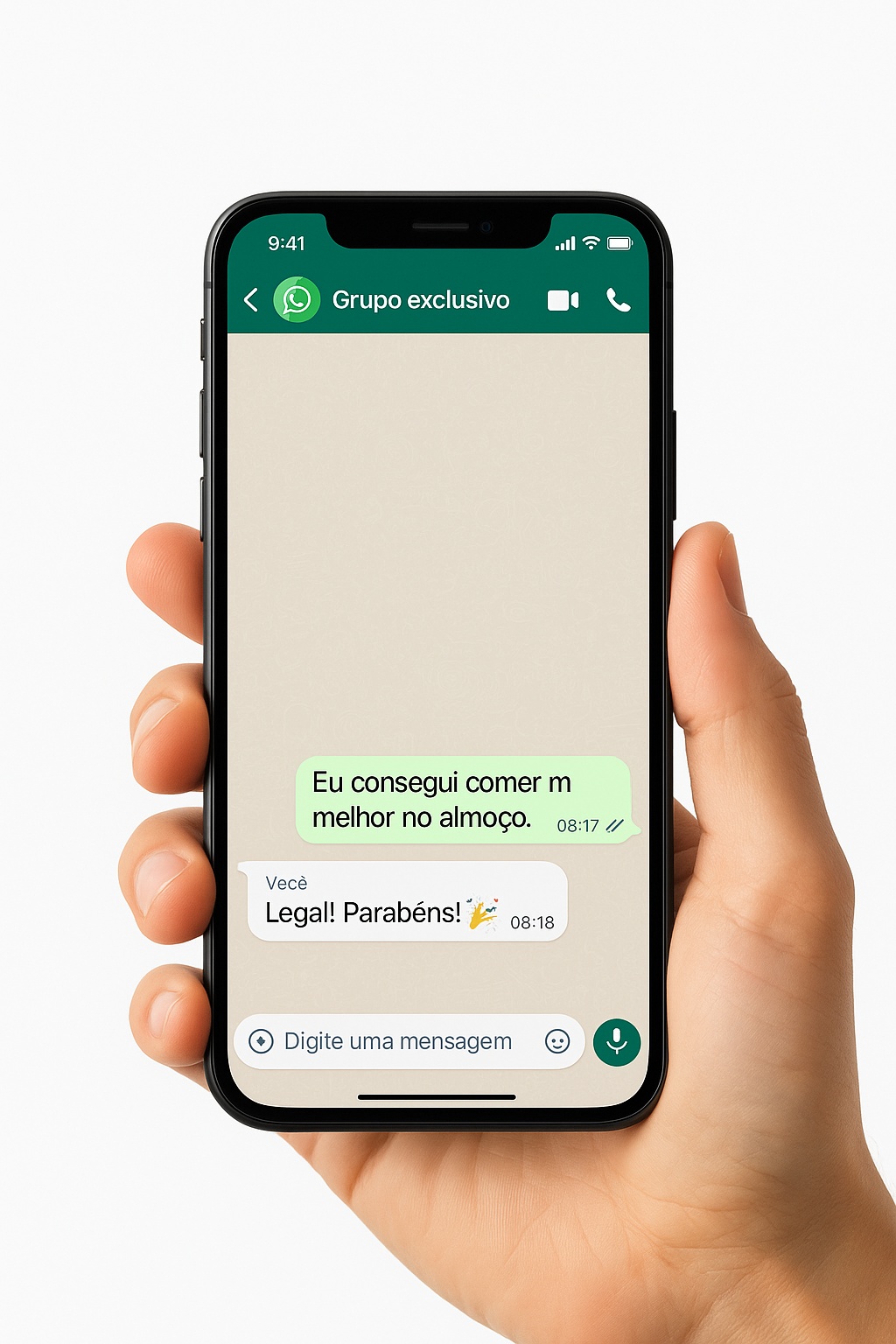 Você terá acesso a conteúdos semanais, desafios, encontros online e materiais de apoio em um grupo fechado no WhatsApp, com suporte das profissionais envolvidas.
